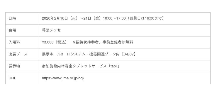 and factory株式会社は、2020年2月18日(火)~21日(金)に幕張メッセにて開催される展示会「第48回 国際ホテル・レストラン・ショー」に客室タブレットサービス『tabii(タビー)』を出展いたします。