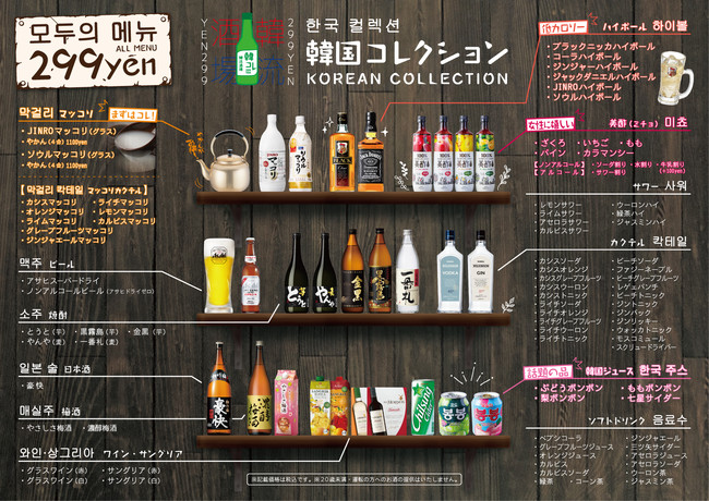 ・299円メニュー及びチャミスルはどちらも1人1回まで注文できます。