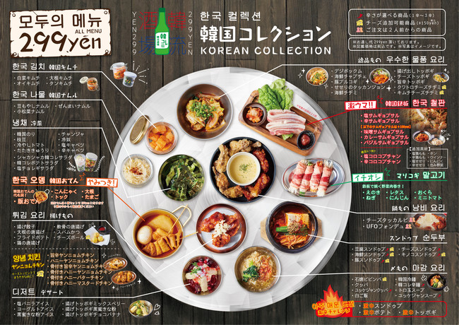 美味しく見た目にも楽しい本格韓国料理がほぼ全品299円(※)!