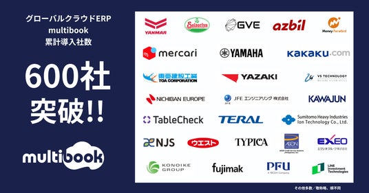 株式会社マルチブック(東京都品川区、代表取締役社長:渡部 学、以下「当社」)は、当社提供のグローバルクラウドERPサービス「multibook(マルチブック)」の累計導入企業数が600社を突破しましたことをお知らせします。