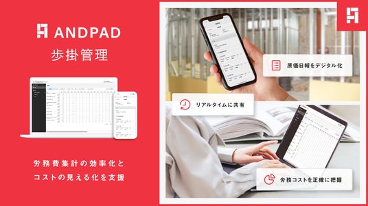 クラウド型建設プロジェクト管理サービス「ANDPAD」を運営する株式会社アンドパッド(本社:東京都千代田区、代表取締役:稲田武夫、以下アンドパッド)は、労務費集計の効率化とコストのリアルタイムな可視化を支援する新機能「ANDPAD歩掛管理」を開発し、本日より原価日報機能の提供を開始いたします。
