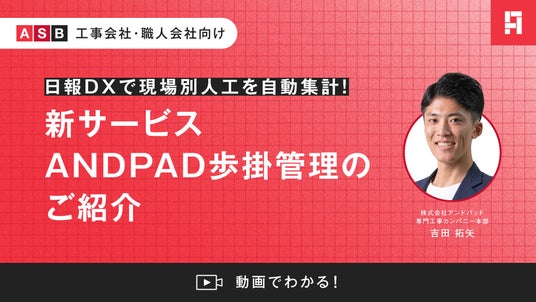 「ANDPAD歩掛管理」原価日報機能の提供開始に合わせ、活用イメージをご紹介する動画を用意しました。ぜひご覧ください。
