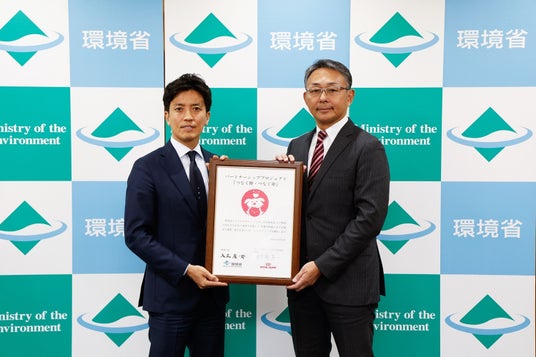 環境省パートナーシッププロジェクト「つなぐ絆、つなぐ命」締結式にて