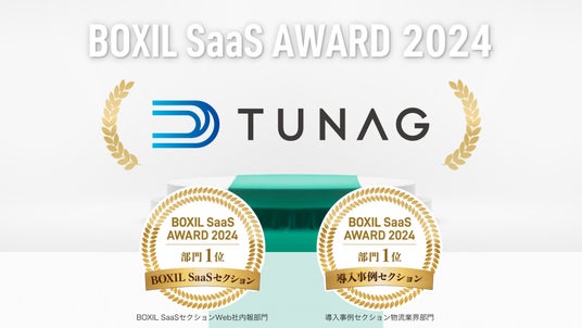 TUNAGが導入事例セクション 物流業界部門1位に選出されるのは、「BOXIL SaaS AWARD 2023」に引き続き2年連続となります。