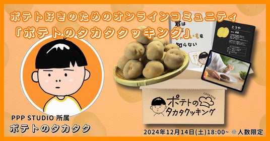 株式会社TORIHADA(本社:東京都渋谷区、代表取締役社長:若井 映亮)の子会社でありクリエイター事務所を運営するPPP STUDIO株式会社(本社:東京都渋谷区、代表取締役社長:卯木 研也)に所属するポテト料理クリエイター「ポテトのタカタク」がポテト好きが集うコミュニティ「ポテトのタカタクッキング」を2024年12月14日(土)に立ち上げることになりました。
