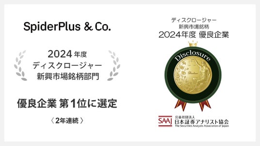 建設DXサービス「SPIDERPLUS」を提供するスパイダープラス株式会社は、公益社団法人日本証券アナリスト協会による「証券アナリストによるディスクロージャー優良企業選定」において、2年連続となる新興市場銘柄部門第1位に選定されたことをお知らせいたします。