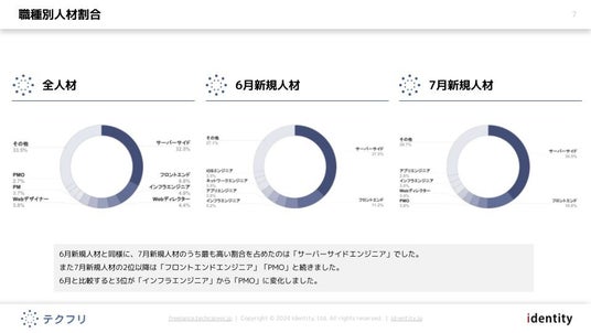 6月新規人材と同様に、7月新規人材のうち最も高い割合を占めたのは「サーバーサイドエンジニア」でした。