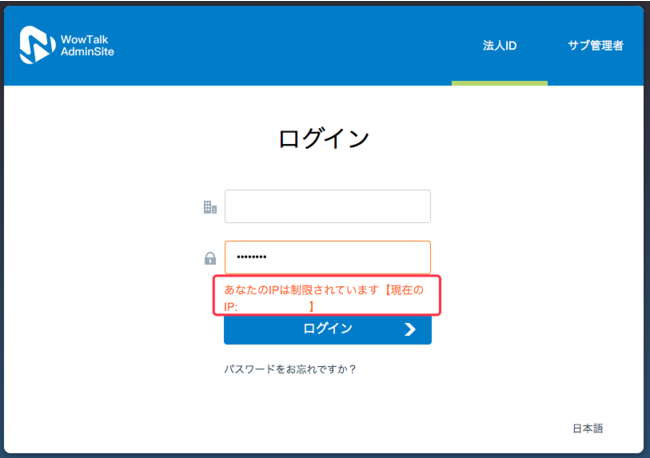 ログイン時に、ログイン端末のIPをチェックします。ホワイトリストに登録されていないIPの場合、ログインを制限します。その際、現在ログインしている端末のIPが、エラー文言として表示されます。