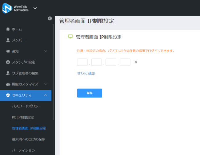 利用社数10,000社超と多くのビジネスパーソンにご利用いただいているサービス、ビジネスチャット・社内SNS「WowTalk(ワウトーク)」を開発・提供するワウテックは、WowTalkの管理機能において、「管理画面のIPログイン制限機能」を追加したことをお知らせいたします。