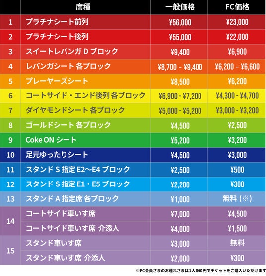 ・スタンドA指定席に関しては、2024-25シーズンのファンクラブ会員さまは無料です。