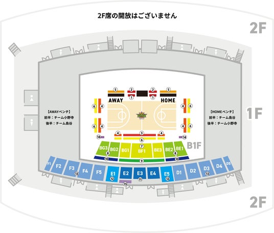 ホーム側、アウェー側ともに、ご購入先着順で、ベンチ側から順番に配席となります。