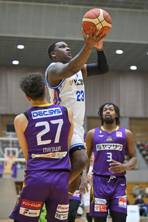後半に入ると流れが福岡に傾く。#23ハリスが連続3Pシュートで9-0のランを作ると一気に逆転。山形も応戦するが流れを掴んだ福岡は#7グリンがブザービーターを決めて9点のリードを奪うことに成功。逃げ切りたい福岡だったが、粘り強い山形の攻撃に苦戦し一時同点まで追いつかれるもこのゲームを支配した#23ハリスがバスケットカウント含む15得点を4Qでたたき出し逃げ切った福岡がGAME2を勝利しクリスマスに10勝目を飾った。