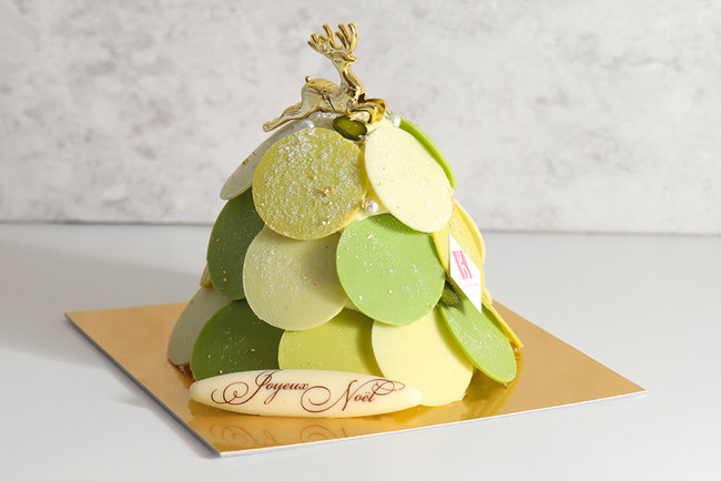 クリスマスツリーをモチーフにしたピスタチオ尽くしのクリスマスケーキ「サパンドノエル」