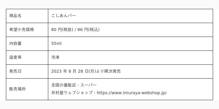 そこで、井村屋では長年培ってきたあずきの加工技術を活かし、なめらかな“こしあん”の食感とあずきの繊細な風味を楽しめる『こしあんバー』を数量限定で発売します。アイスではなかなか目にすることのない“こしあん”の味わいをお楽しみいただくとともに、この機会にぜひ『あずきバー』と食べ比べて“つぶあん”VS.“こしあん”論争に答えを見つけてみてはいかがでしょうか。