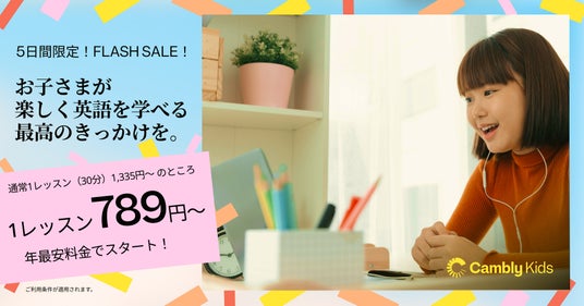 Cambly Inc.(本社:アメリカ・サンフランシスコ | 日本マーケティング担当:小川 葉子)は、子ども向けオンライン英会話サービス「Cambly Kids」において、春の新学期にぴったりな5日間限定のFLASH SALEを開催いたします。キャンペーン期間は2025年4月7日(月)~4月11日(金)まで。
