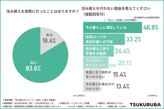 株式会社ツクルバ(所在地:東京都渋谷区、代表取締役CEO:村上 浩輝、以下「ツクルバ」)は、首都圏に持ち家を構える男女1,009人を対象に、「住み替えのイメージ・目的」に関する調査を実施しました。