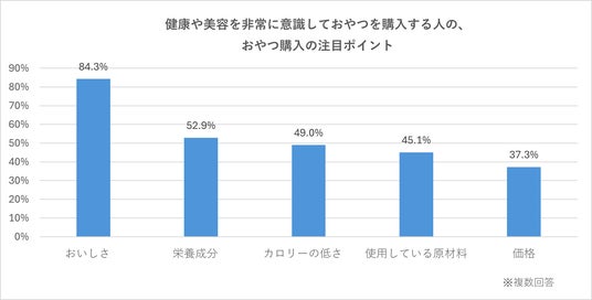 健康や美容を「非常に意識する」と答えた人のおやつ選びの重要ポイントは1位「おいしさ」