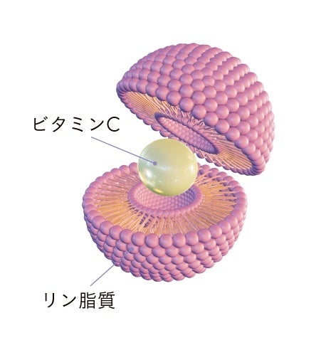リポソームとは、リン脂質の二重膜構造を持つ球状のカプセルです。人の体と親和性の高いリン脂質でできたカプセルの内部に有用成分を閉じ込めることができます。そのため、リポソームビタミンCは、普通のビタミンCと比較して体内への吸収率が高いことが特長です。