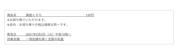 このたび松屋フーズ(本社:東京都武蔵野市、代表取締役社長:瓦葺一利)では、牛めし・カレー・定食・その他丼の「松屋」におきまして、2021年2月2日(火)より「とろろ」を発売いたします。