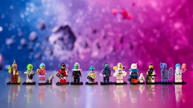 エイリアンや宇宙遊泳中の飛行士など宇宙をテーマにしたミニフィギュア、全12種類のうち1種類がランダムにはいったミステリーボックスです。ミニフィギュアコレクションに加えて飾ったり、空想のアクションごっこで遊んだりと自由に楽しめます。