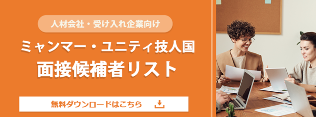 技人国の人材だけでなく、技能実習の人材もご希望の方は「ミャンマー技能実習 面接候補者 概要とリスト」をお申し込みください。