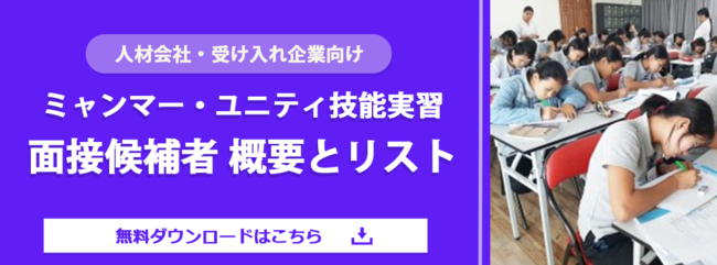 【技能実習生ご検討の方】ミャンマー・ユニティ技能実習面接候補者 概要とリスト