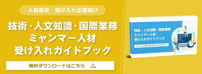 さらに技人国での雇用を検討されている方々はぜひ「技術・人文知識・国際業務ミャンマー人材受け入れガイドブック」のお申し込みもおすすめしております。お申し込みいただければ無料で配布させていただきます。