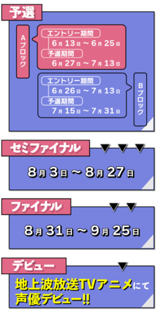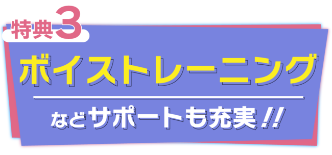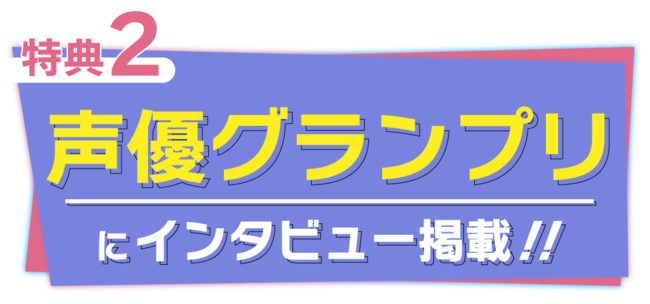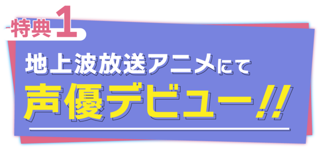 オーディション合格者3名には、地上波放送アニメでの声優デビューや声優雑誌「声優グランプリ」の特別インタビュー、ボイストーニングなど、声優としてご活動いただくための豪華特典をご用意しております。