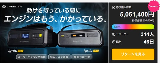 引き続き、スーパーキャパシタ式ジャンプスターター【Ignic(イグニック)】へのご支援と応援をどうぞよろしくお願いいたします。