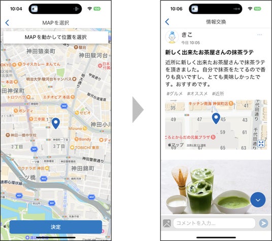 GOKINJOでは、近隣のお店や小児科など子育てに関する情報、イルミネーションの綺麗な場所など地域に根ざした情報が多数投稿されています。しかし、これまで多くのGOKINJOユーザーから、「投稿された情報がどこの場所の事なのかわかるようにしてほしい」という要望をいただいていました。また、昨今では、様々なソーシャルネットワークや店舗紹介アプリにMAP機能が備わっていますが、お店の宣伝のために行われるサクラ投稿などの問題も指摘されています。そこで今回、信頼できる空間とメンバーによる、より確かな情報共有を目指した独自のMAP機能を開発しました。