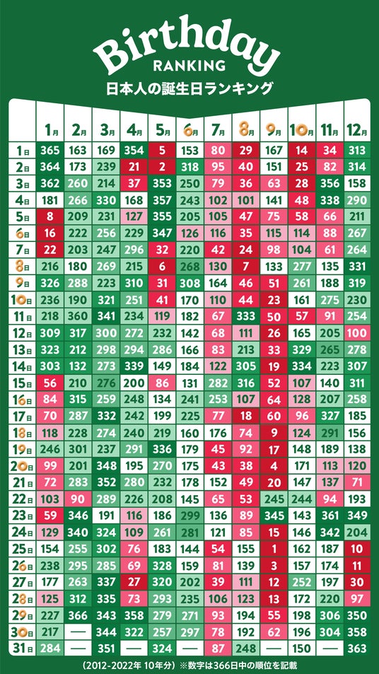 あなたやあなたの大切な人の誕生日は、何位でしたか?