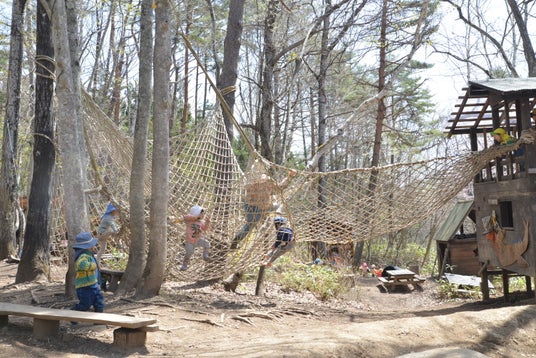 飯綱町に隣接する長野市北部、標高1,050mの飯綱高原にある私立の自然派幼稚園です。春は水芭蕉、夏にはホタルが飛び、秋の紅葉、そして冬は雪にすっぽりと包まれます。園庭には、自然のままの林や野原、沢があります。本物の自然や生き物に触れる実体験を大切にし、五感で感じて楽しむ、そういった中で友だちと遊びを創造しています。