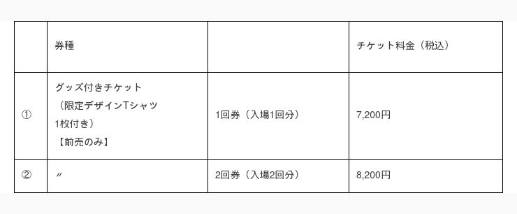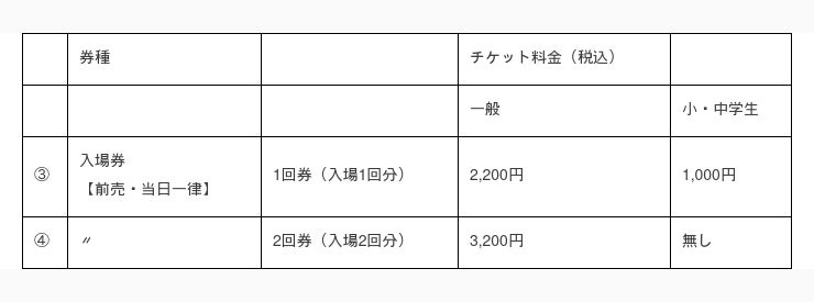 ※未就学児は入場無料。(チケットをお持ちの18歳以上の保護者1名につき、同伴の未就学児1名が無料。なお、同伴の未就学児は、グッズ購入不可、各種特典等の配布物のお渡しもございません)