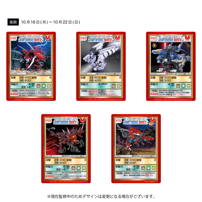 有料チケット1枚につき、入場特典として「ゾイドバトルカードゲーム風カード」を1枚ランダムでプレゼントします。