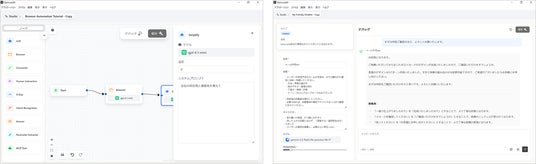 コードを書く必要はなく、自然言語による指示や直感的な操作でワークフローを構築できます。現場担当者が自ら業務改善を進められる点が特徴です。