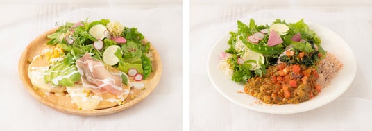 【MINGYU】 生ハム&アボカドパンケーキ、【DK】ほうれん草トマトカレー