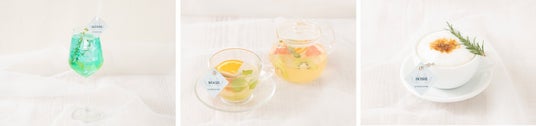 マスカットゼリーソーダ 、ホットフルーツレモネード、ほうじ茶ラテ