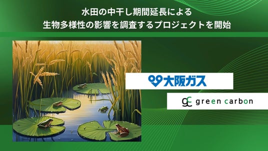 ネイチャーベースのカーボンクレジット創出・販売事業を展開するGreen Carbon株式会社(代表取締役:大北潤、以下:Green Carbon(グリーンカーボン))は、大阪ガス株式会社(代表取締役社長:藤原正隆、以下:大阪ガス)と連携し、水田の中干し期間延長(水を圃場から抜くこと)における、生物多様性への影響を調査するプロジェクト(以下、本プロジェクト)を開始した事をお知らせします。