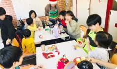 クリスマス会として、ゼリーやクッキーなど全て手作りのお菓子を何種類か用意してバイキング形式で実施しました。赤ちゃん連れの方や中学生くらいまで幅広いこどもたちが40人程参加され、とても喜んでいただけました。普段お忙しいママたちも、こどもを遊ばせながら、ママ同士気軽に会話できる場所としても活用いただいています。安心して近所の人に頼れる地域を作っていきたいと思っています。ご支援いただきありがとうございました。