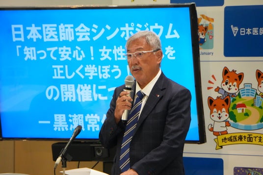 (2)では、黒瀬巌常任理事が「昨今では女性特有のがんは若年化が進み、20~40歳代でも発症するケースが増加傾向にあること」「『子宮頸がん』や『乳がん』の初期ではほとんど症状がなく見過ごしてしまいがちですが、医学・医療の進展により、いずれのがんも早期発見ができれば完治する可能性が高い病と言われていること」などに言及。これらを踏まえ、がんの早期発見・早期治療に結びつけるためにも、定期的な検診とともに日頃から医療機関への適切な受診が必要であることを知ってもらうことを目的として、2025年10月5日の日曜日、午後2時30分より、日本医師会館1階大講堂において、シンポジウムを開催することを報告し、参加を呼び掛けました。