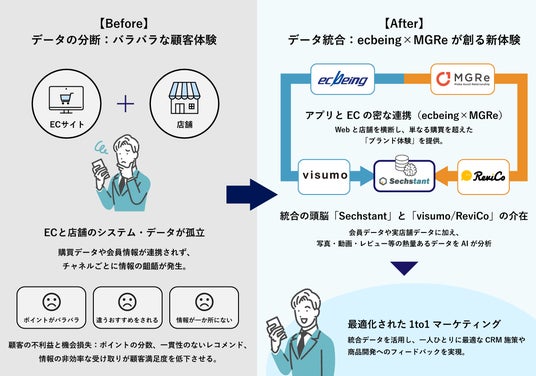 - 「ecbeing」と「MGRe」のアプリ技術を連携させた統合型ECソリューションの提供。