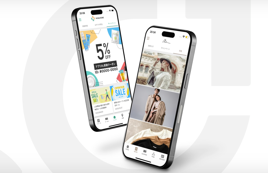 「MGRe」は、アプリマーケティングプラットフォームとして、小売・EC・ブランド企業を中心に導入され、会員証、ポイント、クーポン、プッシュ通知、EC連携、店舗情報、コンテンツ配信などを統合し、顧客との継続的なコミュニケーションを実現します。ノーコードで簡単にアプリ開発が可能なうえ、個社ごとにカスタマイズができ、SaaSでありながら将来施策を止めない拡張性を両立するサービスを提供しています。