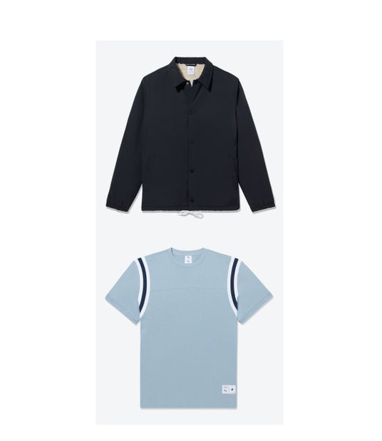 アパレルは、コットンツイル素材の6ポケット付きダンガリーズとシェルパライナー付きのナイロンのコーチジャケットがベースとなっています。その他、フーディやTシャツには、プレミアムコットンの素材を使用したアイテムなども登場します。
