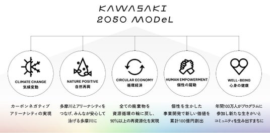 ▶︎「Kawasaki 2050 Model」で取り組む5つのテーマと2050年のゴール指標