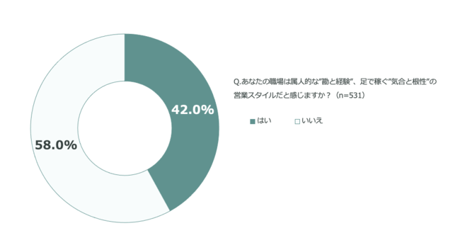 法人営業職531名のうち 42.0% は自分の職場が属人的な“勘と経験”、足で稼ぐ“気合と根性”の営業スタイル