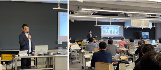 試食会の冒頭では、辻調理師専門学校 教育研究センター長の山田研より、本プロジェクトの背景と概要について説明を行い、東洋製罐グループ イノベーション推進室長の三木逸平氏が今後の展望について語りました。