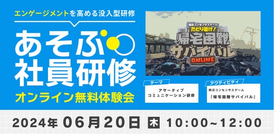 あそび総合カンパニー株式会社IKUSA (本社:東京都豊島区、代表取締役:赤坂大樹)は、あそぶ社員研修【アサーティブコミュニケーション編】オンライン体験会を2024年6月20日(木)10時~12時、オンライン(Zoom)にて無料で開催します。