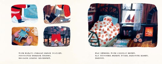 絵本の定番ともいえるクリスマスものを手がけたいと思いながら、なかなかその機会がありませんでした。すでに、あまりにもたくさんのクリスマス絵本が作られていて、なかなか新味のある企画ができなかったのです。ところが、この絵本のアイデアには驚きました。なんと、サンタクロースが初めてお祝いするクリスマスの物語だというのです。