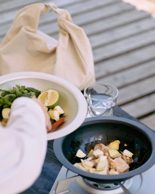 HEGEを入れて持ち運べば、屋外でもお米を蒸らしたり、温かい料理の温度をキープできます。