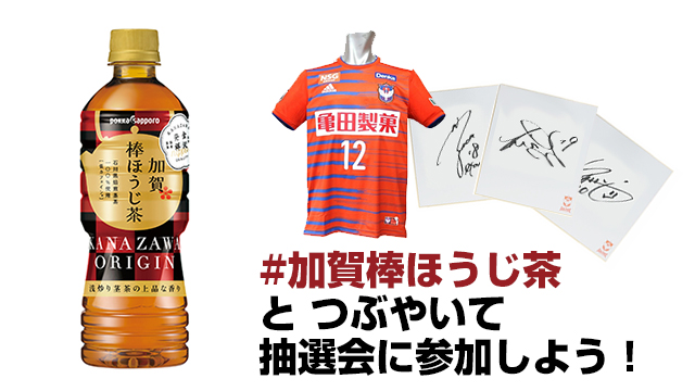 試合当日『#(ハッシュタグ)加賀棒ほうじ茶』を付けてSNS(TwitterもしくはInsutagram)でつぶやいてください。